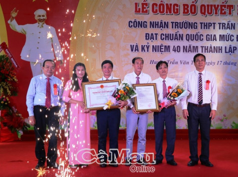 (CMO) Sáng ngày 17/10, Trường THPT Trần Văn Thời long trọng tổ chức lễ đón nhận Bằng công nhận trường đạt chuẩn Quốc gia mức độ 1 của UBND tỉnh Cà Mau và kỷ niệm 40 năm thành lập trường. Dự lễ có Phó Bí thư Thường trực Tỉnh ủy Phạm Bạch Đằng; Phó chủ tịch UBND tỉnh Trần Hồng Quân.