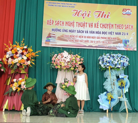 Hưởng ứng Ngày Sách và Văn hóa đọc Việt Nam (21/4), ngày 19/4, Trường tiểu học Nguyễn Thị Định (Phường 1, TP. Bạc Liêu) tổ chức hội thi xếp sách nghệ thuật và kể chuyện theo sách để tạo sân chơi cho học sinh, đồng thời giáo dục các em nhiều bài học quý từ các hoạt động này.