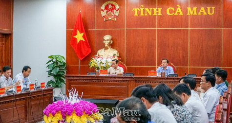 | Đồng chí Huỳnh Quốc Việt (bên phải), Uỷ viên dự khuyết BCH Trung ương Đảng, Phó bí thư Tỉnh uỷ, Chủ tịch UBND tỉnh và đồng chí Trần Quốc Chính, Giám đốc Sở Thông tin và Truyền thông đồng chủ trì hội nghị tại điểm cầu Cà Mau. |