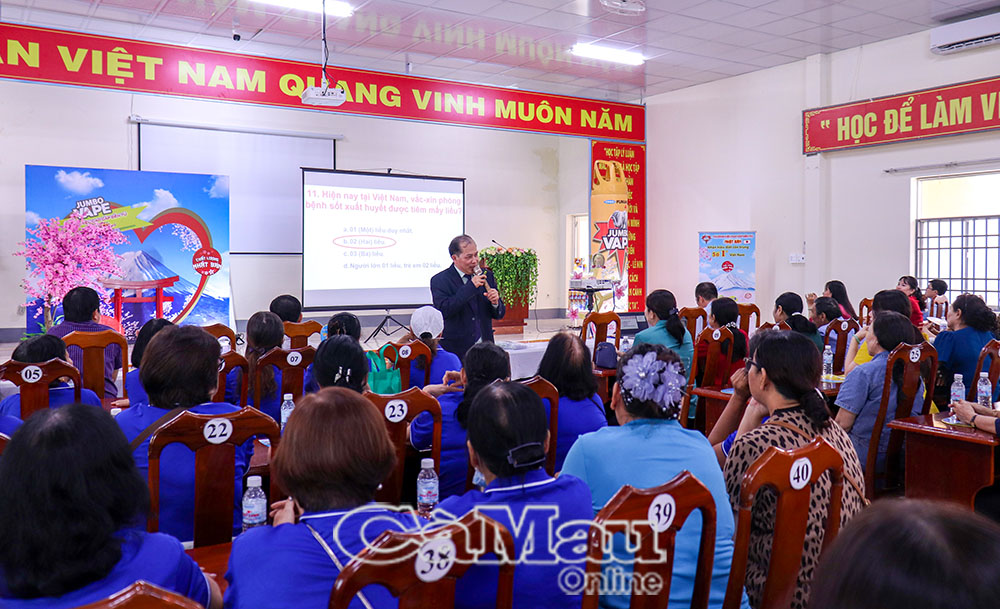 Báo Cà Mau Trong 3 ngày (5-7/11), Hội Liên hiệp Phụ nữ tỉnh Cà Mau phối hợp Trung tâm Kiểm soát bệnh tật tỉnh, Công ty Cổ phần Mai Sen (TP Hồ Chí Minh) và Nhãn hàng JUMBO VAPE - Công ty Fumakilla Việt Nam tổ chức 4 cuộc truyền thông với chủ đề “Chung tay phòng, chống sốt xuất huyết hiệu quả - bảo vệ sức khỏe gia đình và cộng đồng”. Hơn 1.000 cán bộ, hội viên phụ nữ và người dân tham dự.