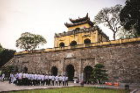 | Du khách nước ngoài tham quan Hoàng thành Thăng Long. |