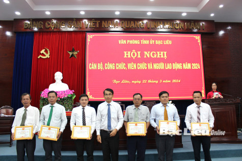 Cán bộ, công chức Văn phòng Tỉnh ủy được khen thưởng vì hoàn thành xuất sắc nhiệm vụ. Ảnh: T.T