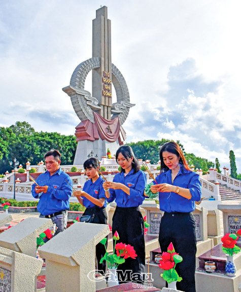 | Ðoàn viên thanh niên thắp hương các phần mộ anh hùng liệt sĩ nhân kỷ niệm 77 năm Cách mạng Tháng Tám và Quốc khánh 2/9. |