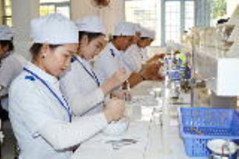 Nhà trường luôn chú trọng đào tạo đội ngũ nhân viên y tế chất lượng phục vụ chăm sóc sức khoẻ Nhân dân. (Giờ học bào chế của sinh viên Khoa Dược). |
