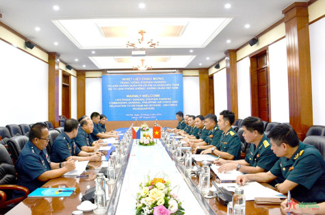Sáng 29-8 tại Hà Nội, Trung tướng Nguyễn Văn Hiền, Ủy viên Trung ương Đảng, Tư lệnh Quân chủng Phòng không-Không quân đón, làm việc với Trung tướng Stephen Parreño, Tư lệnh Không quân Philippines.