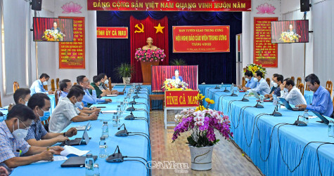 Báo Cà Mau (CMO) Hội nghị trực tuyến Báo cáo viên Trung ương tháng 4/2022, diễn ra sáng 6/4, với sự tham gia của 1.707 điểm cầu (tỉnh, huyện, xã), hơn 50.000 đại biểu tham dự. Phó trưởng Ban Tuyên giáo Trung ương Phan Trung Thuỷ chủ trì và định hướng công tác tuyên truyền.