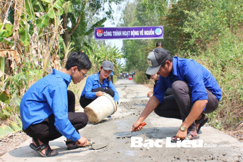 ĐV-TN dặm vá lộ giao thông nông thôn xuống cấp. Ảnh: H.L