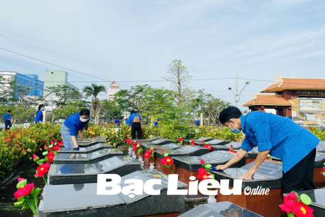 Bên cạnh đó, hàng năm, vào dịp kỷ niệm Ngày Thương binh - Liệt sĩ, các cấp bộ Đoàn trong tỉnh đều tổ chức nhiều hoạt động như làm vệ sinh môi trường, thắp nến tri ân các anh hùng liệt sĩ tại những nghĩa trang liệt sĩ và đài tưởng niệm. Điển hình là tuổi trẻ huyện Vĩnh Lợi mới đây đã ra quân dọn vệ sinh, lau chùi bia mộ tại Nghĩa trang liệt sĩ huyện nhằm hướng tới kỷ niệm 74 năm Ngày Thương binh - Liệt sĩ (27/7/1947 - 27/7/2021). ĐV-TN với tinh thần tự giác cao, mỗi người một nhiệm vụ, chẳng mấy chốc cả nghĩa trang đã tinh tươm, sạch sẽ.