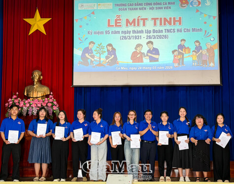 Lễ kết nạp đoàn viên tại Trường Cao đẳng Cộng đồng Cà Mau, nhân kỷ niệm 95 năm Ngày thành lập Đoàn TNCS Hồ Chí Minh (26/3/1931-26/3/2026).