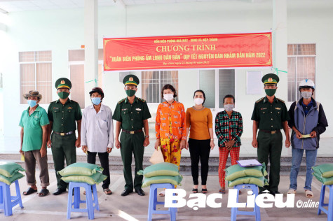 ĐV-TN Đồn Biên phòng Nhà Mát (TP. Bạc Liêu) tặng quà tết cho người dân có hoàn cảnh khó khăn. Ảnh: T.H