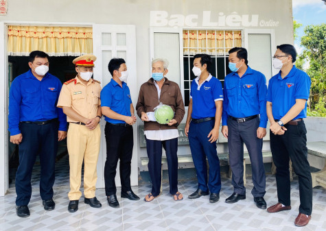 Tuổi trẻ tỉnh nhà thăm, tặng quà cho gia đình người có công với cách mạng ở huyện Vĩnh Lợi. Ảnh: H.L