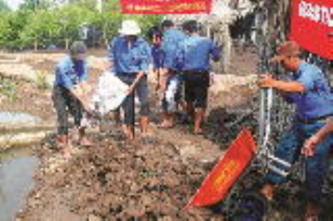 | Không ngại mệt nhọc, vất vả, tất cả đoàn viên cùng ra sức góp 15 ngàn ngày công hoàn thành 102 km lộ đất đen, giúp người dân đi lại dễ dàng. |