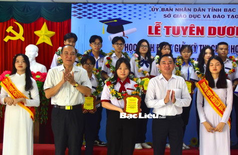 Để ghi nhận những thành tích đáng tự hào ấy, Sở GD-ĐT Bạc Liêu đã tuyên dương 18 HS đạt giải Ba và giải Khuyến khích; đồng thời tặng thưởng cho 8 tập thể tổ bộ môn của các trường THPT do có thành tích trong tập huấn, bồi dưỡng HS đạt giải cao tại Kỳ thi chọn HS giỏi cấp quốc gia THPT năm học 2023 - 2024.