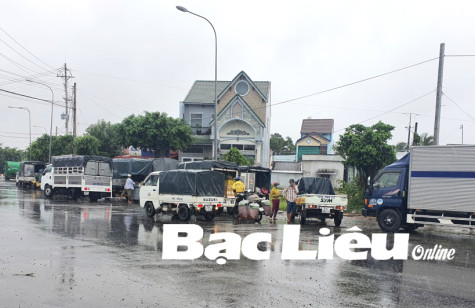 Các xe luồng xanh tập kết lên, xuống hàng tại thị trấn Châu Hưng, huyện Vĩnh Lợi. Ảnh: C.L