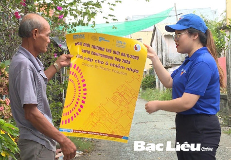 Đoàn viên TX. Giá Rai tuyên truyền người dân thực hiện trật tự đô thị và bảo vệ môi trường.