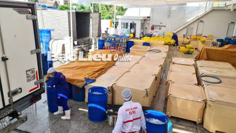 Hoạt động sản xuất tại một doanh nghiệp trong điều kiện giãn cách xã hội ở TX. Giá Rai. Ảnh: M.Đ