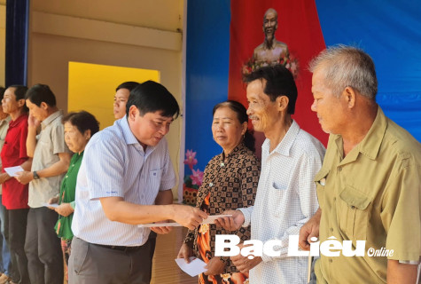 Lãnh đạo TX. Giá Rai trao tặng quà cho các gia đình chính sách, hộ có hoàn cảnh khó khăn.