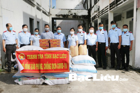 TX. Giá Rai tiếp nhận gạo và nhu yếu phẩm do Thanh tra tỉnh tặng để phân bổ cho các bếp ăn phục vụ người được cách ly tập trung. Ảnh: K.P