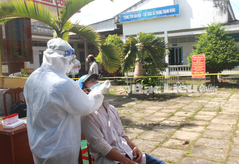Lấy mẫu xét nghiệm cho người dân xã Phong Thạnh Đông (TX. Giá Rai).