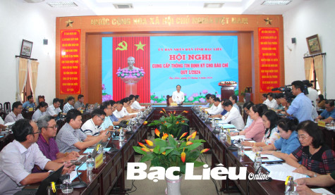 Chiều 3/4, dưới sự chủ trì của Chủ tịch UBND tỉnh - Phạm Văn Thiều, UBND tỉnh tổ chức hội nghị cung cấp thông tin định kỳ cho báo chí quý 1/2024. Dự hội nghị có lãnh đạo các sở, ban, ngành tỉnh, các địa phương và trên 40 phóng viên các cơ quan báo chí thường trú tại Bạc Liêu và các cơ quan báo chí địa phương.