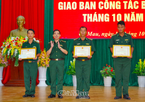 (CMO) Sáng ngày 14/10, tại Hội nghị giao ban công tác biên phòng tháng 10/2022, Bộ Chỉ huy Bộ đội Biên phòng (BĐBP) tỉnh đã thông báo và công bố Quyết định số 2544/QĐ-UBND ngày 13/10/2022 của UBND tỉnh Cà Mau về việc khen thưởng đột xuất các cán bộ thuộc BĐBP tỉnh có thành tích xuất sắc trong thực hiện nhiệm vụ tuần tra, phát hiện và bắt giữ tàu cá CM99248 TS vận chuyển 20.500 lít dầu DO trái phép trên biển.