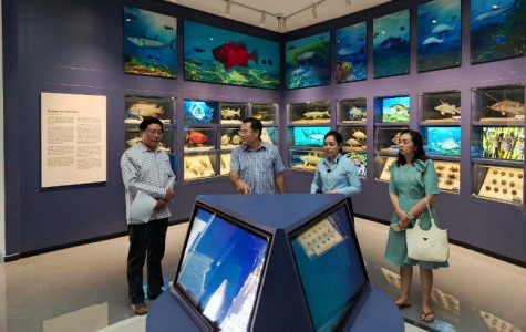 Phó Chủ tịch UBND tỉnh - Ngô Vũ Thăng (thứ hai từ trái sang) kiểm tra không gian trưng bày tại Bảo tàng tỉnh.
