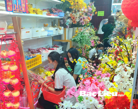 Các bạn trẻ mua sắm đồ dùng trang trí Tết cho gia đình. Ảnh: Đ.K.C