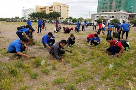 | Đội CTXH Phân hiệu Trường Đại học Bình Dương Cà Mau thực hiện ngày Chủ nhật xanh tại Quảng trường Thanh niên, Phường 5, TP Cà Mau. |