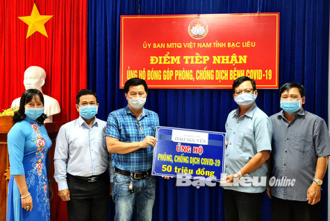 Theo đó, có các doanh nghiệp, cá nhân ủng hộ Quỹ phòng, chống dịch COVID-19 gồm: ông Quách Văn Thông - đại diện gia đình Cà phê Đào Nguyên ủng hộ 50 triệu đồng; Ngân hàng TMCP Kiên Long trao ủng hộ 200 triệu đồng; gia đình Nhà thuốc tây Mai Yến (Phường 3, TP. Bạc Liêu) ủng hộ 5 triệu đồng.