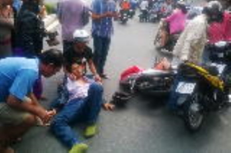(CMO) Khoảng 14 giờ 50 phút ngày 24/3, trên đường Trần Hưng Đạo, Phường 5, TP. Cà Mau (đoạn trước Nhà sách Việt Văn) xảy ra một vụ tai nạn giao thông khá nghiêm trọng giữa xe gắn máy BKS 94-F1 141.62 và xe gắn máy BKS 69-E1 150.89 chạy cùng làn đường.