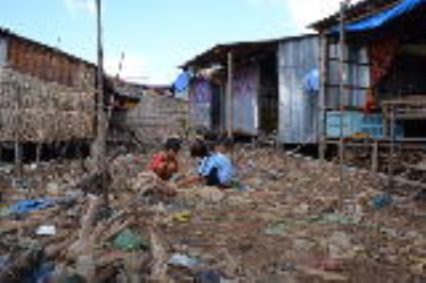 | Trẻ nhỏ ở Xóm Lở hầu như không có sân chơi, tình trạng thất học, bỏ học là thực trạng nhức nhối. |