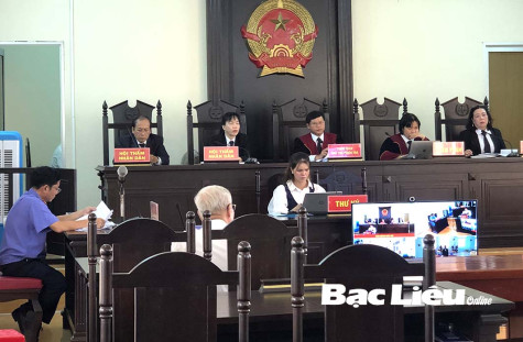 Tòa án nhân dân tỉnh Bạc Liêu xét xử trực tuyến một vụ án về ma túy. Ảnh: K.T