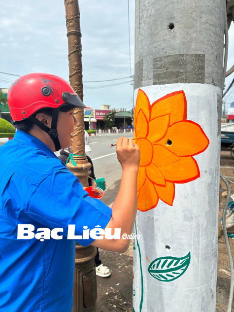 Cuối tuần, một nhóm bạn trẻ trong màu áo xanh tình nguyện đã gây chú ý với nhiều người đi đường trên các tuyến đường nội ô TP. Bạc Liêu. Bằng những nét vẽ dễ thương, những cây cột điện phút chốc bỗng “nở hoa”, tạo nên diện mạo mới cho phố phường.