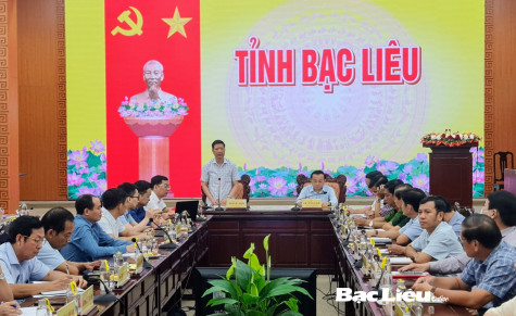 (BL-KP) Sáng 9/5, Phó Chủ tịch Thường trực UBND tỉnh - Lê Tấn Cận đã có buổi tiếp và làm việc với Đoàn khảo sát Văn phòng Chính phủ do đồng chí Nguyễn Duy Hoàng - Phó Cục trưởng Cục Kiểm soát thủ tục hành chính, Văn phòng Chính phủ làm trưởng đoàn. Tham dự buổi làm việc còn có đại diện lãnh đạo các sở, ban, ngành cấp tỉnh; đại diện lãnh đạo UBND TP. Bạc Liêu.