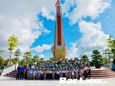 Đoàn đã đến Nghĩa trang liệt sĩ tỉnh (huyện Hòa Bình) làm lễ dâng hoa và thắp hương tưởng nhớ, tri ân các anh hùng liệt sĩ đã anh dũng hy sinh vì sự nghiệp đấu tranh giải phóng dân tộc, xây dựng và bảo vệ Tổ quốc. Mặc niệm dưới cột cờ Tổ quốc uy nghiêm và xúc động trước dòng chữ “Tổ quốc ghi công”, các em học sinh càng hiểu hơn rằng, để non sông, đất nước Việt Nam được độc lập, thống nhất, tươi đẹp và rạng rỡ như ngày hôm nay, công lao của bao thế hệ đi trước là vô cùng to lớn! Còn tại Di tích lịch sử Nọc Nạng (TX. Giá Rai), các em được nghe giới thiệu về địa danh Nọc Nạng, về gia đình nông dân Mười Chức và sự kiện Nọc Nạng - sự kiện tiêu biểu cho tinh thần quả cảm của người nông dân đã tạo tiếng vang lớn đối với phong trào đòi lại ruộng đất của nông dân Nam Bộ.