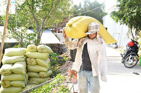 | Chợ lúa Khánh Bình cũng đã giải quyết được công việc cho hàng trăm lao động nhàn rỗi ở nông thôn tăng thêm thu nhập từ nghề bốc vác. |