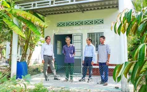 Căn nhà tình nghĩa của ông Nguyễn Văn Lập (thứ hai từ trái sang), thương binh 4/4 ở ấp Ba Mến A, xã An Trạch, được xây dựng khang trang từ nguồn hỗ trợ của Nhà nước và sự đóng góp của gia đình.