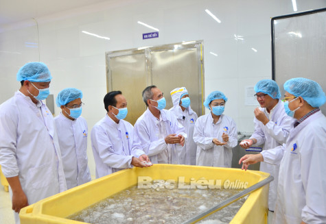 Lãnh đạo Tỉnh ủy, UBND tỉnh kiểm tra hoạt động sản xuất của doanh nghiệp thủy sản nhằm tháo gỡ khó khăn, thúc đẩy tăng trưởng cho xuất khẩu tôm Bạc Liêu.