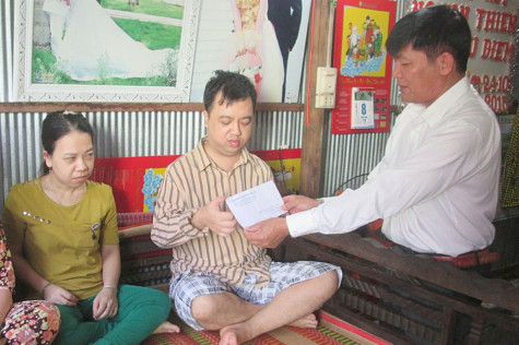 | Nguyên Phó chủ tịch UBND huyện Năm Căn Lê Văn Đức thăm, tặng quà cho nạn nhân chất độc da cam/dioxin. |