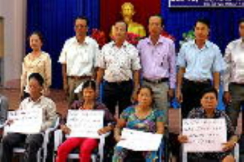 | Hội Người tàn tật và trẻ mồ côi huyện Đầm Dơi trao xe lăn cho người khuyết tật. |
