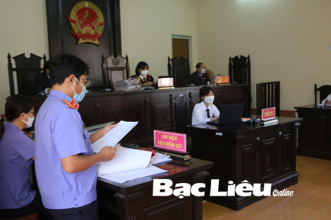 Kiểm sát viên đọc cáo trạng tại phiên tòa. Ảnh: K.K