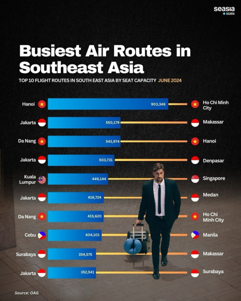 Việt Nam có 3 trong số 10 tuyến bay nội địa bận rộn nhất Đông Nam Á trong tháng 6/2024 - Nguồn: seasia.co