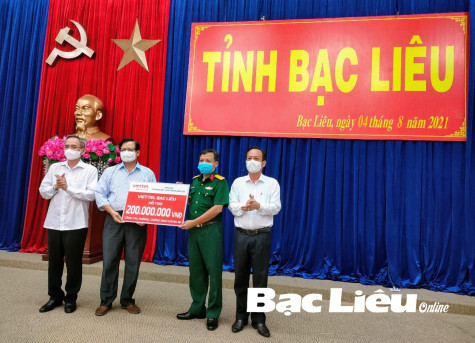 Ngày 4/8/2021, đồng hành cùng với địa phương trong công tác phòng chống dịch bệnh COVID-19, Viettel Bạc Liêu đã trao tặng số tiền 200 triệu đồng cho Ủy ban MTTQ Việt Nam tỉnh Bạc Liêu. Dịch bệnh COVID-19 đang diễn biến rất phức tạp gây ảnh hưởng lớn đến kinh tế, đời sống của Nhân dân và hoạt động sản xuất - kinh doanh của các doanh nghiệp, tính đến hết ngày 3/8/2021 hiện đã lan rộng ra 62/63 tỉnh/thành phố với hơn 174.461 ca nhiễm, riêng địa bàn tỉnh Bạc Liêu là 94 ca nhiễm và đang có nguy cơ lan rộng, hy vọng rằng với nguồn kinh phí tài trợ 200 triệu đồng này của Viettel Bạc Liêu sẽ đóng góp phần nào vào việc đầu tư trang thiết bị y tế, cũng như công tác phòng chống dịch nói chung của địa phương.