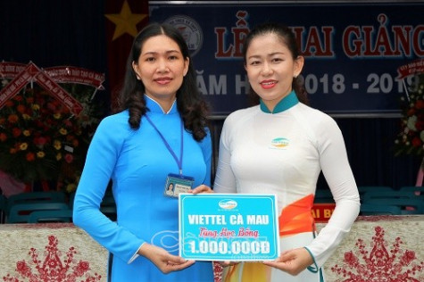 | Ngoài 190 suất học bổng trong chương trình tại 6 huyện, dịp khai giảng năm học 2018-2019, đại diện Viettel Cà Mau còn trao thêm 5 suất học bổng cho học sinh trường THCS – THPT Lý Văn Lâm. |