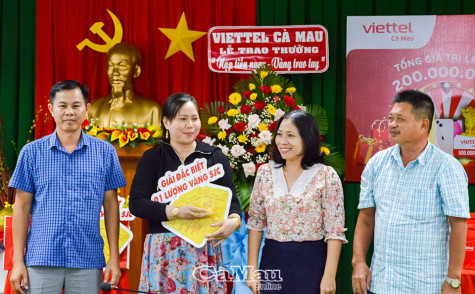(CMO) Chiều ngày 27/9, Viettel Cà Mau tổ chức lễ trao thưởng chương trình “Nạp tiền ngay - Vàng trao tay” lần 3. Đây là chương trình lớn với tổng giá trị giải thưởng lên đến hơn 200 triệu đồng.
