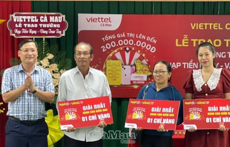 Ngay trong buổi lễ trao giải thưởng, Viettel Cà Mau trao 2 giải đặc biệt, trong đó khách hàng Trần Thị Hồng Cẩm (huyện Ngọc Hiển) may mắn trúng 1 lượng vàng trị giá hơn 60 triệu đồng và điểm bán Lê Minh Hồng (huyện Cái Nước) trúng 5 chỉ vàng SJC; trao 6 giải nhất, trong đó khách hàng trúng giải nhận 3 chỉ vàng, điểm bán nhận 1 chỉ vàng. Ngoài ra, chương trình còn trao 4 giải nhì, 16 giải khuyến khích cho những thuê bao, điểm bán may mắn trong đợt thứ 4 của chương trình.