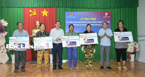 VNPT Bạc Liêu trao tặng điện thoại smartphone cho người dân.