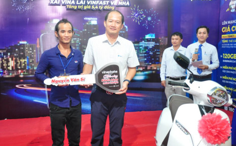 Với mức tiêu dùng từ 20.000 đồng/tuần, tất cả thuê bao VinaPhone trả trước có cơ hội trúng thưởng xe máy điện VinFast Klara và ôtô Vinfast Lux A2.0. Và trong buổi quay số tuần thứ tư, hách hàng Nguyễn Văn Sĩ, Khóm 1, thị trấn Sông Đốc, huyện Trần Văn Thời đã may mắn trúng giải thưởng xe máy điện VinFast Klara trị giá 49,6 triệu đồng từ chương trình.