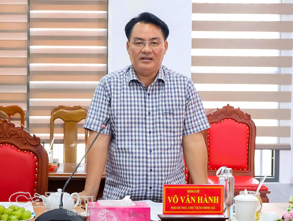 Đồng chí Võ Văn Hành, Phó Bí thư Đảng ủy, Chủ tịch UBND xã, Trưởng ban Đại diện Hội đồng quản trị NHCSXH xã Năm Căn, phát biểu tại buổi làm việc.