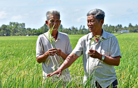 Vòng qua Rạch Nhum, xã Khánh Bình Ðông, men theo những con đường quê thông suốt về Kinh Hội, Chống Mỹ, xã Khánh Bình. Hai bên đường đi xanh ngắt màu lúa và thơm nức mùi đòng đòng. Không giấu được niềm vui, lão nông Phạm Văn Minh (Tám Minh), năm nay 73 tuổi, ở ấp Chống Mỹ, xã Khánh Bình đưa tay về phía cánh đồng sau nhà mà khề khà: “Lúa ST24 đó. Nó mới vừa trổ lác đác, nhìn mấy bông lúa non dài ngoằng mà phát ham. Cả cánh đồng mấy trăm công đất này năm nay ruộng nào cũng phơi phới”.